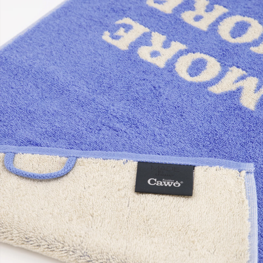 Unsere Cawö Postcard Towels – mit eingewebtem Statement, gefertigt in Deutschland aus 100 % Baumwolle – verbinden Humor mit hochwertiger Frottierqualität und modernem Design.