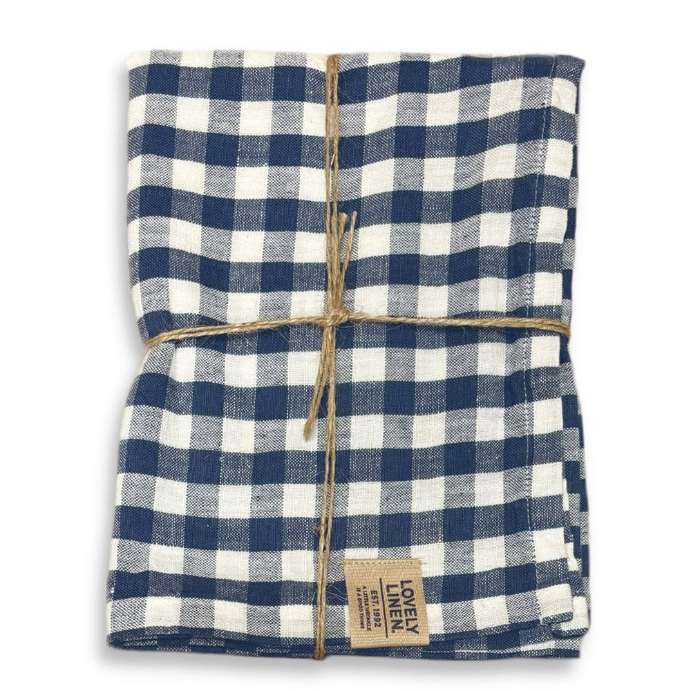 Geschirrtuch von Lovely Linen, reines Leinen, Karo denim blue