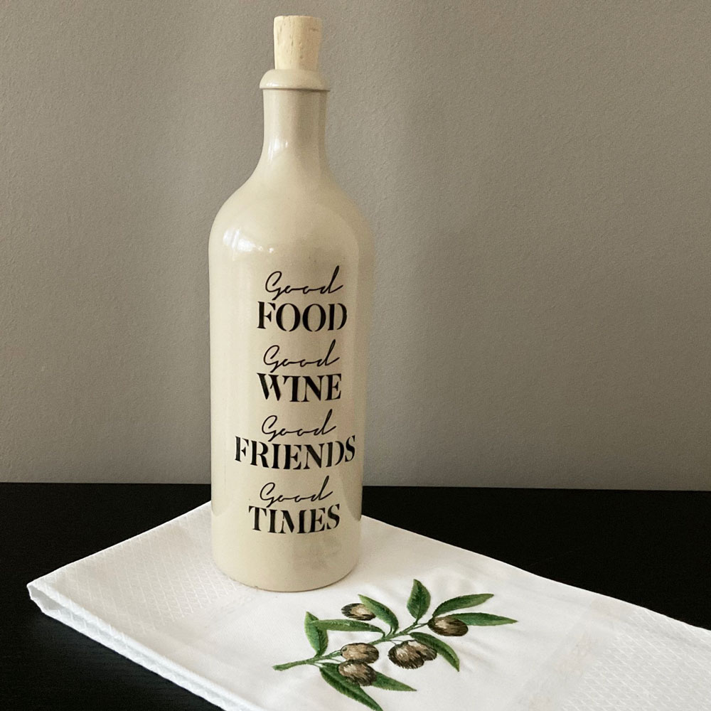 Endlich gibt es eine dekorative Art Olivenölflaschen auf den Tisch oder in die Küche zu stellen.