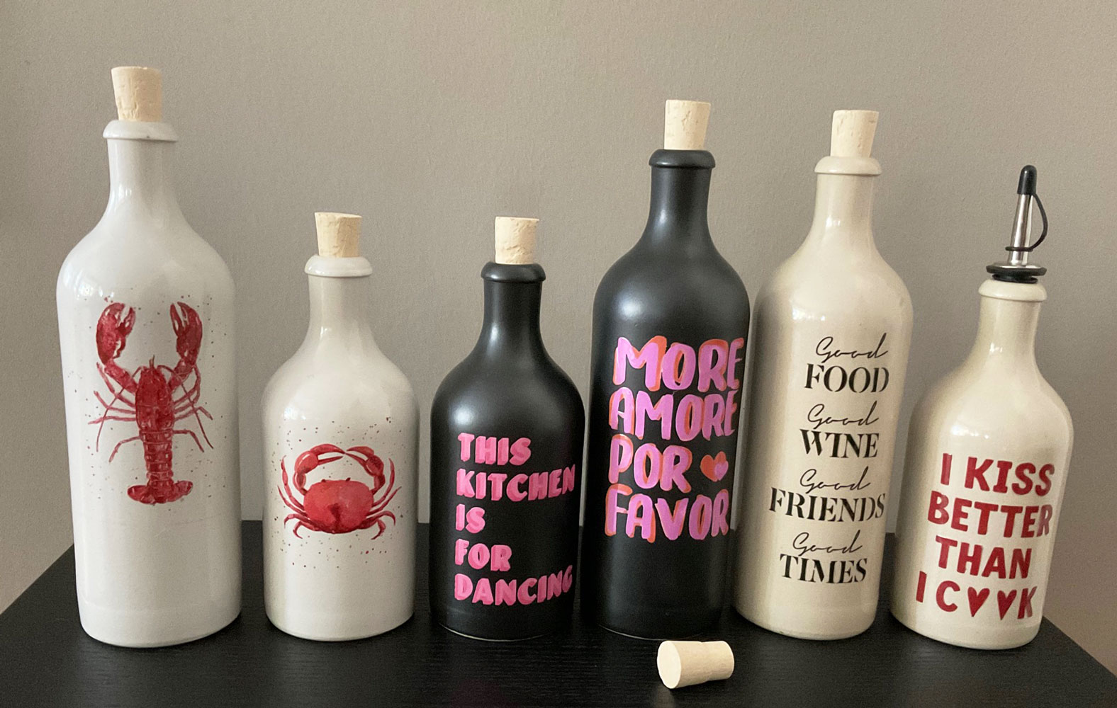 Keramikflaschen für Olivenöl, „More amore por favor“