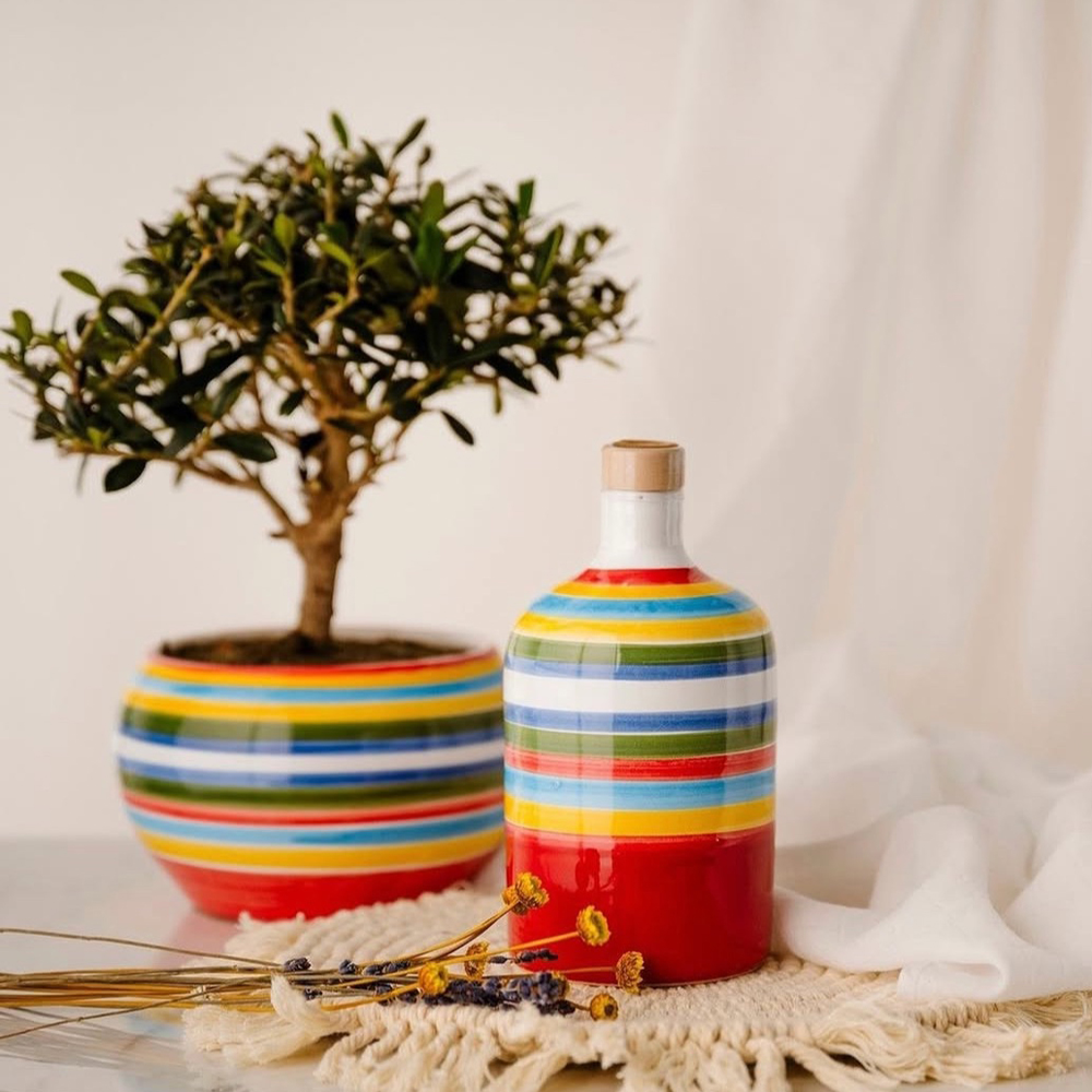 Die Keramikflaschen werden in Apulien mit Hand bemalt, jede Flasche ist ein Unikat.