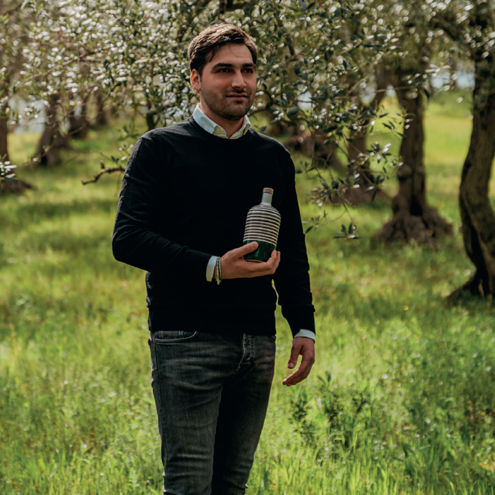 Olivenöl in einer Keramikflasche, Serie DEMETRA, made in Italy